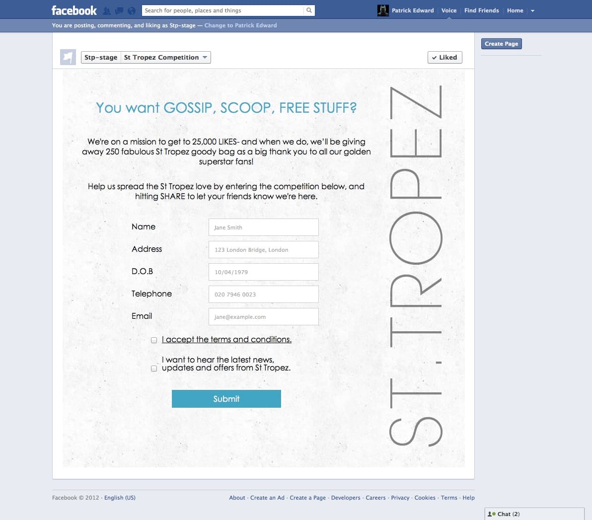 I created several apps for the St Tropez team, including the 12 Days of Christmas and the 25,000 Signup Special. Utilizing PHP and jQuery, these apps were designed to simplify the registration process for users and enhance their overall experience.